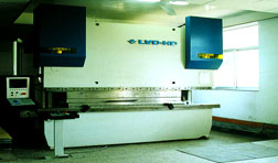 薄板構(gòu)件的加工與制作,公司使用不同規(guī)格國(guó)內(nèi)先進(jìn)的具有高速度、高精度的液壓剪切設(shè)備QC12Y-6×2500、QNN31/8(圖三)進(jìn)行下料;采用WC67Y-160/4000(圖四),WC67Y-100/3200,WMZ300/60等 折彎設(shè)備進(jìn)行折彎成型,保證了所有板金件的加工質(zhì)量。