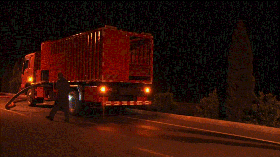 大流量遠(yuǎn)程管線作業(yè)車迅速?gòu)纳较落佋O(shè)管路3公里至山頂,將在山下水源直接供應(yīng)至山上,直接為山上的消防車供水,救援工作有條不紊地展開(kāi);