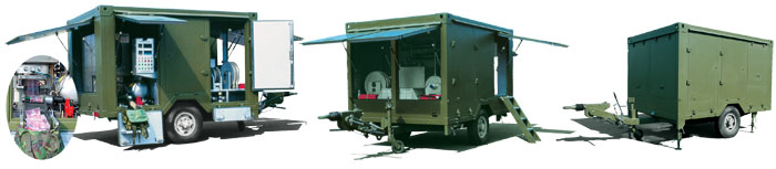 該系統(tǒng)由GTD97-3/2-I型掛車底盤,廂體、全自動液體包裝機、空壓機、水箱、管路系統(tǒng)、凈水超濾機、紫外線凈水儀、電纜卷盤、軟管卷盤、電控系統(tǒng)、導靜電裝置及消防設備、附件箱等組成。